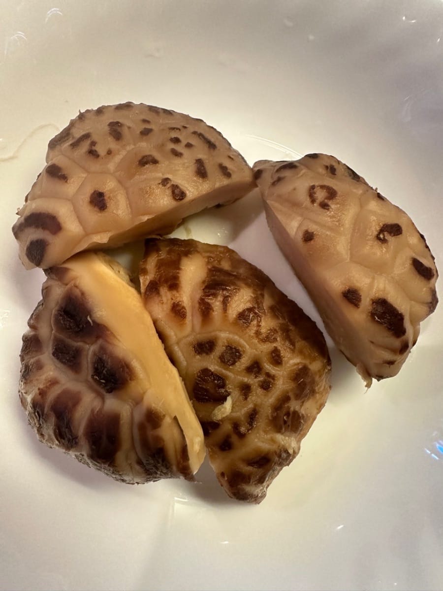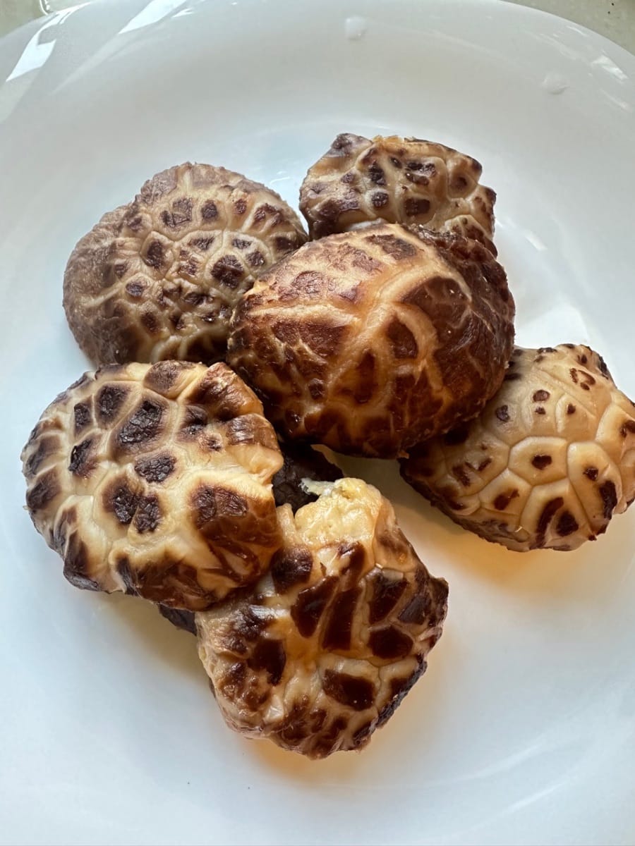 - Shiitake-Pilze mit etwas Speiseöl einweichen, damit sie elastischer werden. Das Einweichwasser nicht wegschütten, sondern zum Schmoren der Pilze verwenden.
