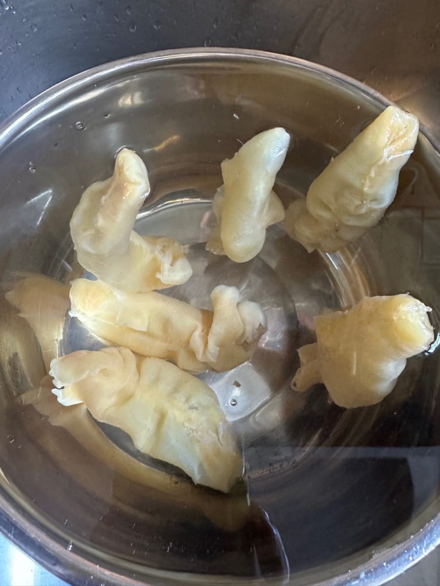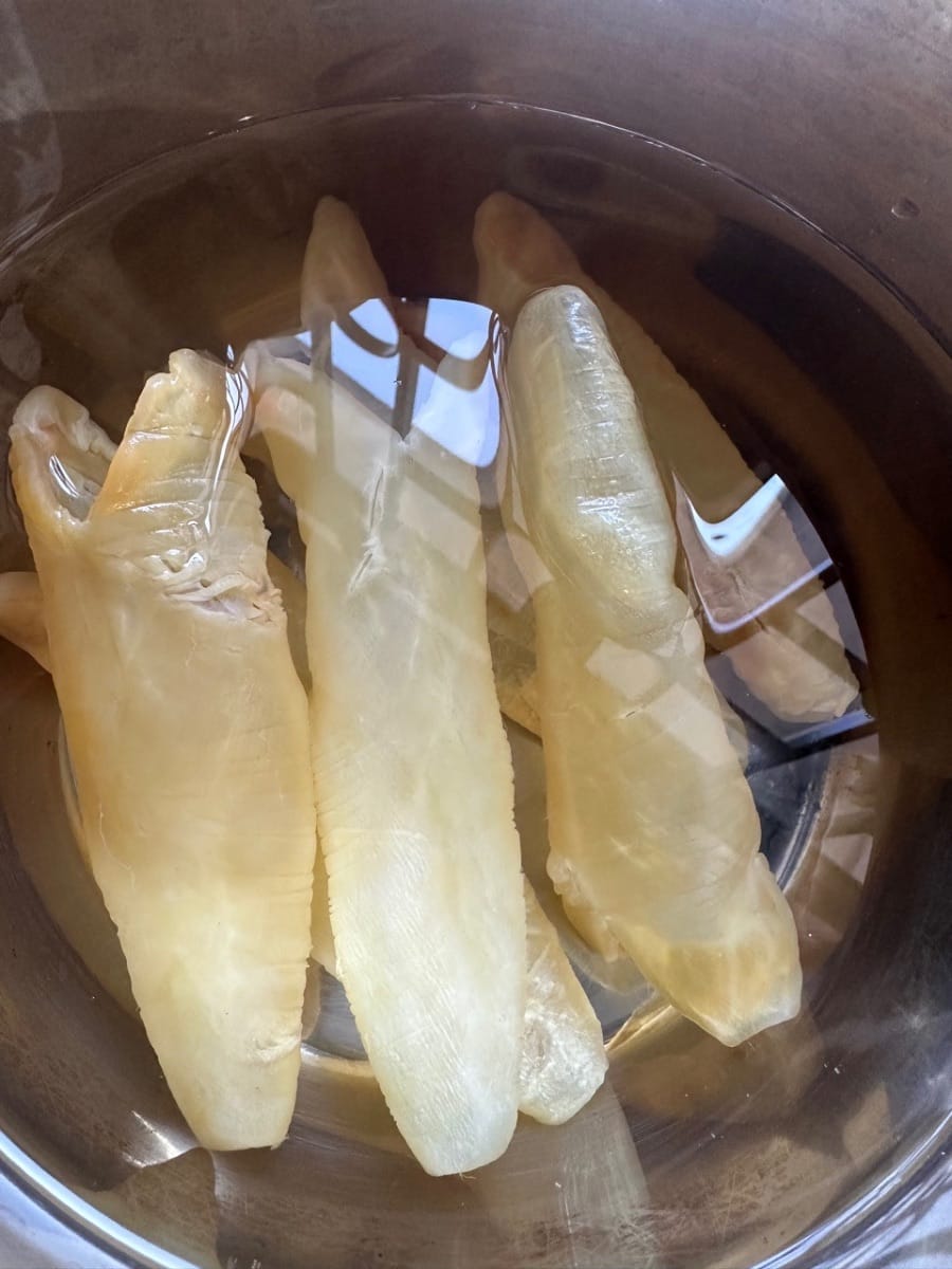- Die Fischblase über Nacht einweichen, bis sie sich ausdehnt.