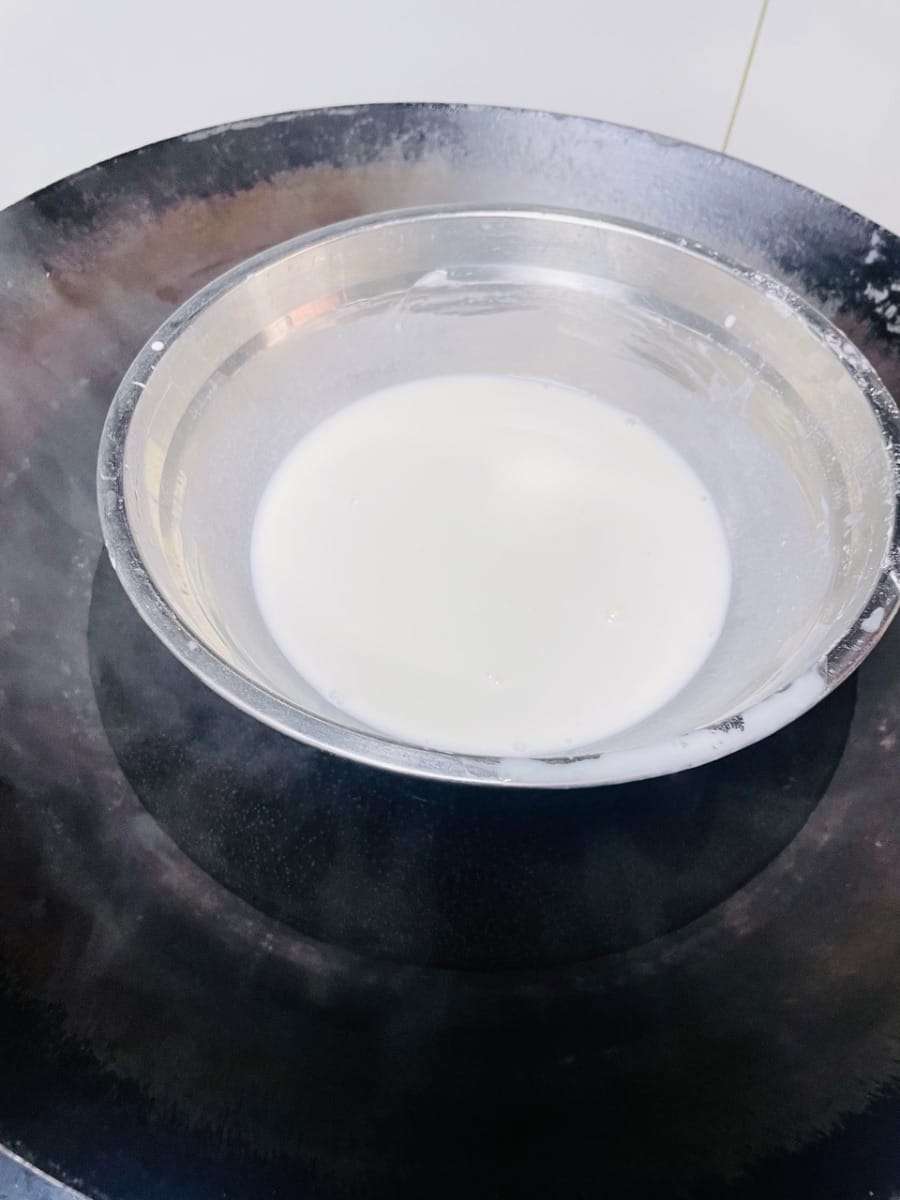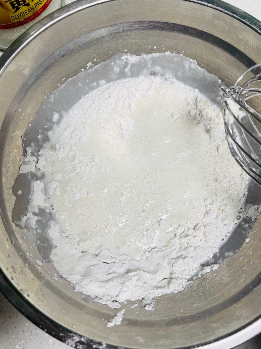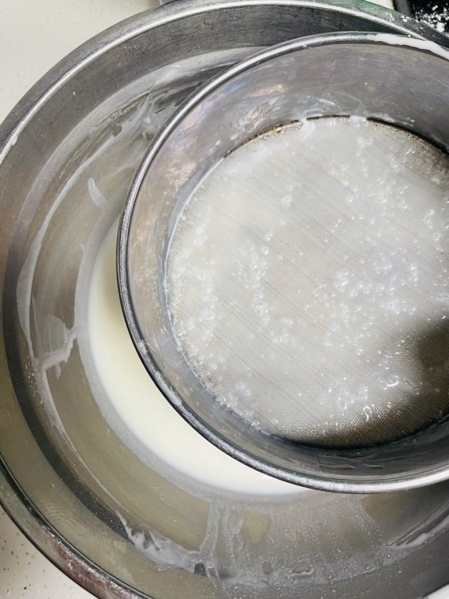 - Die Mochi-Füllung zubereiten (während der Fermentation, um Zeit zu sparen)