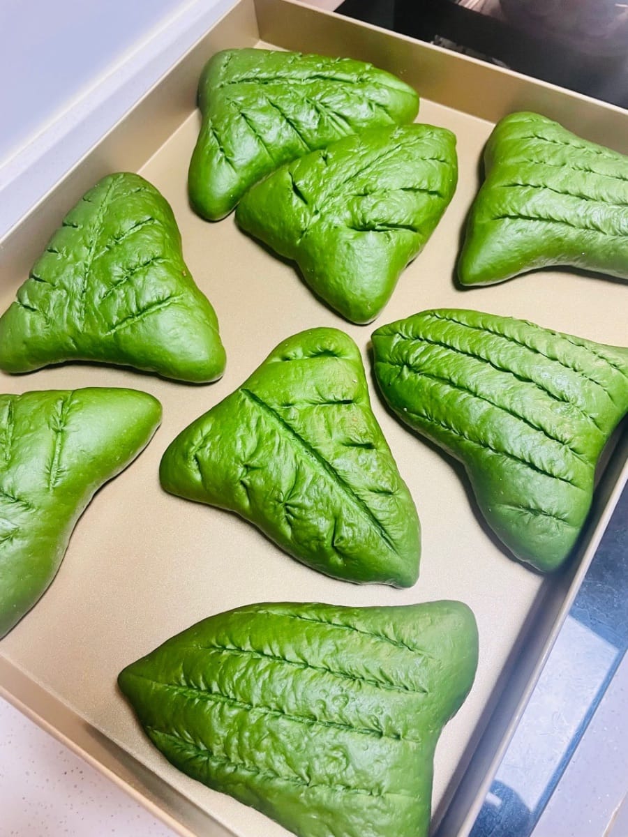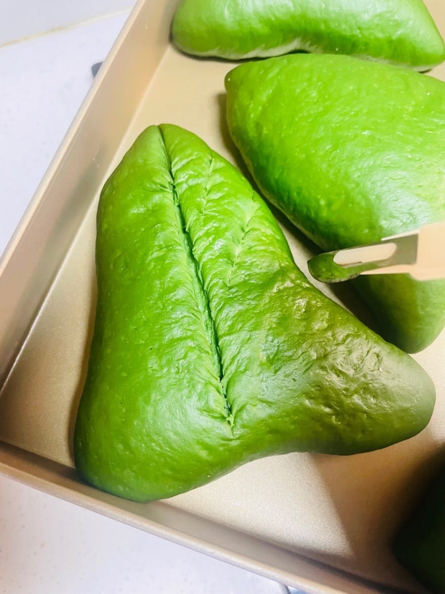 Matcha-Weichbrot: Bei 160 °C (325 °F) 20 Minuten backen. Nach etwa 10 Minuten mit Alufolie abdecken (um ein Verbrennen der Oberfläche zu verhindern). Da jeder Ofen anders ist, sollten Sie das Brot während des Backens regelmäßig kontrollieren, damit es nicht zu trocken oder zu dunkel wird.