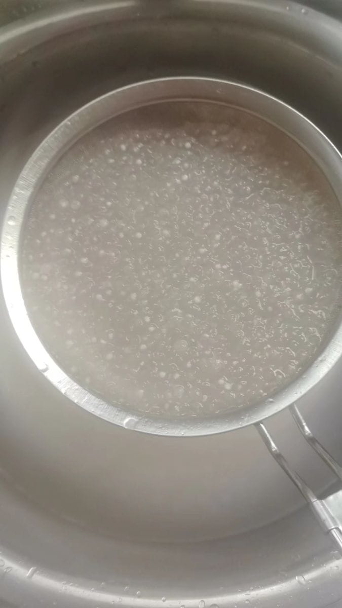 - Sagoperlen in kochendes Wasser geben und umrühren. 15 Minuten kochen lassen, bis sie in der Mitte leicht weiß werden. Herdplatte ausschalten und weitere 15 Minuten ziehen lassen, bis sie vollständig durchsichtig sind.