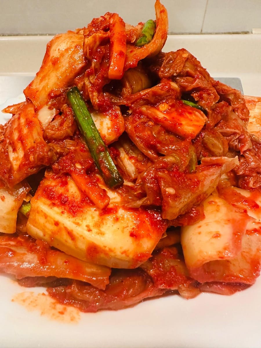 Es besticht durch seinen reichen und vielschichtigen Geschmack: eine harmonische Mischung aus sauer, scharf und herzhaft. Die bei der Fermentation entstehende Milchsäure sorgt für eine erfrischende Säure, während die Schärfe des Chilis nicht zu dominant ist. Zusammen mit Knoblauch, Ingwer, Apfel und Birne ist es knackig, zart und saftig. Es eignet sich hervorragend als Beilage, um reichhaltige Gerichte abzurunden, oder um Reis, Nudeln und anderen Grundnahrungsmitteln eine besondere Note zu verleihen. Jeder Bissen ist appetitlich und sättigend.