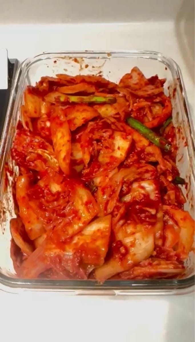 - Zum Schluss das Kimchi in sterilisierte Behälter füllen und einen Tag lang bei Zimmertemperatur fermentieren lassen. Anschließend im Kühlschrank aufbewahren und nach Belieben servieren. Guten Appetit!