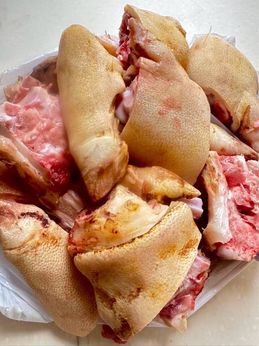 - Wenn Sie beim Metzger Schweinsfüße kaufen, bitten Sie ihn, diese in kleinere Stücke zu schneiden und die Haare an den Füßen abzubrennen.