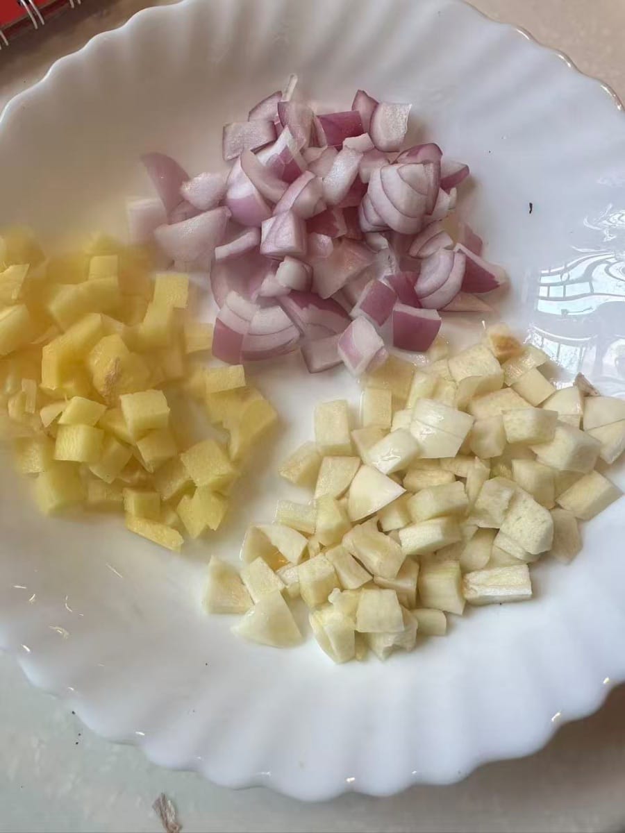 - 3 Ingwerscheiben (gewürfelt)