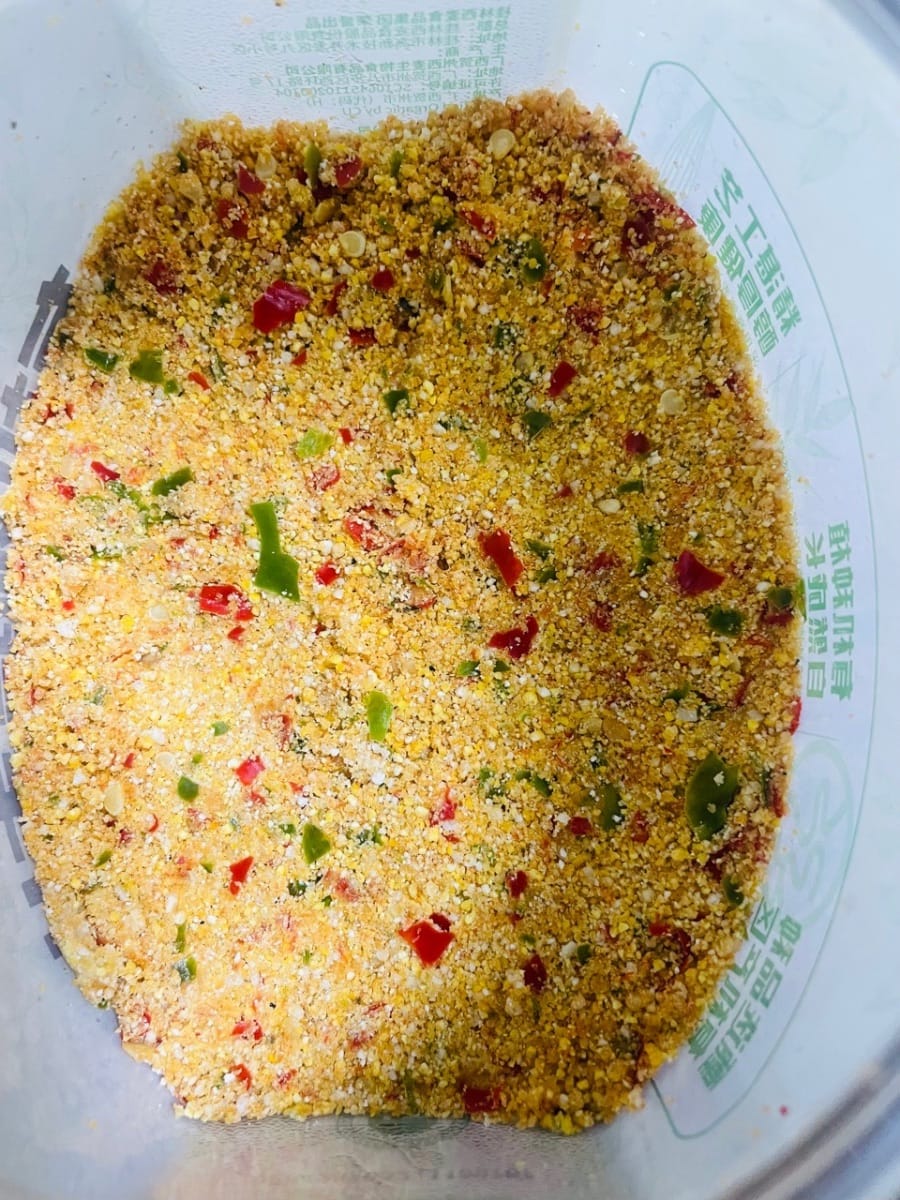 This is a must-have on the dining tables of Yunnan, Hunan, Sichuan, and Chongqing – handmade chili flakes! Look at this bowl, the golden powder particles are mixed with bright red chili flakes, the grains are coarse and chewy, and because of the addition of glutinous rice, they also have a slightly sticky and chewy texture, making your mouth water just looking at it. After it ferments, the taste is absolutely amazing! It's refreshingly sour without being pungent, and spicy with a mellow aroma that doesn't dry out your throat, with the fragrance of fried rice and corn. It tastes much better than the ready-made ones you buy online. Whether you're stir-frying pork intestines, twice-cooked pork, or frying rice or eggs, just put it in the pan and it instantly becomes a super satisfying dish. You really can't buy this homemade flavor outside.