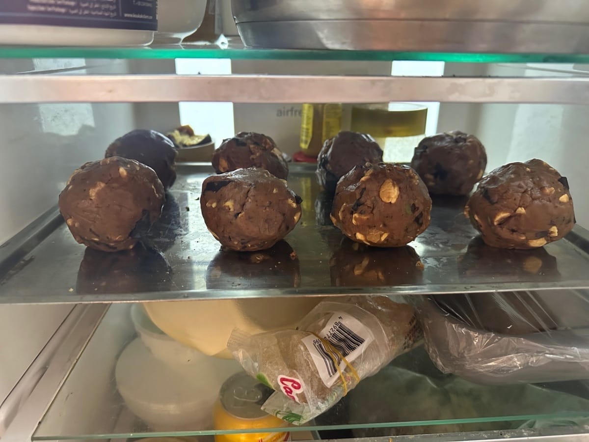 - Una vez que la masa de galletas esté firme y esté lista, transfiérala a una bandeja para hornear. Recuerde dejar suficiente espacio entre ellas a medida que crecen.