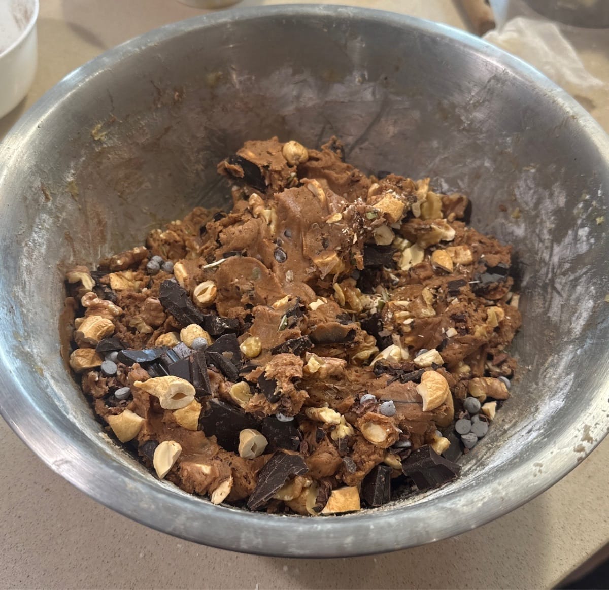 - Luego agregue chispas de chocolate y nueces según corresponda.