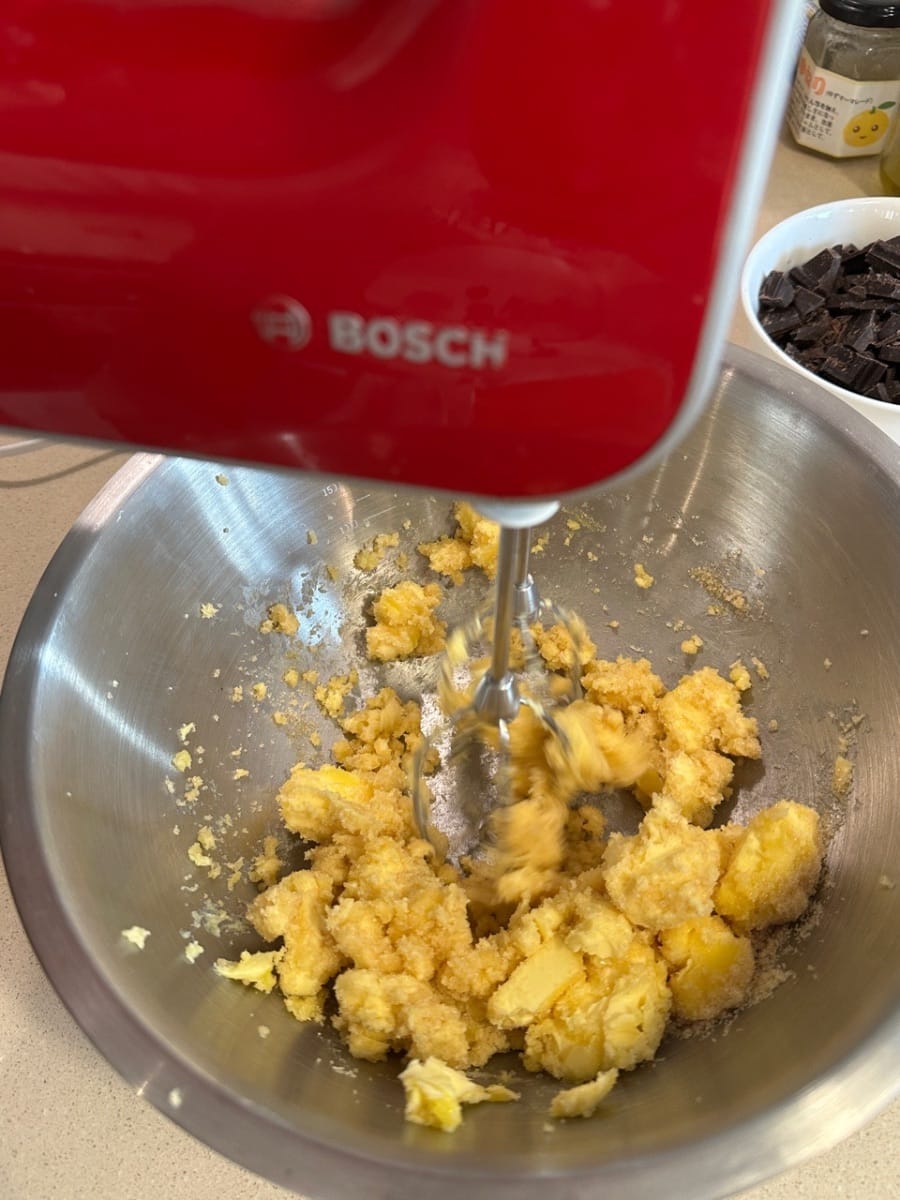 - Y use una batidora eléctrica y mezcle la mantequilla y el azúcar juntos.