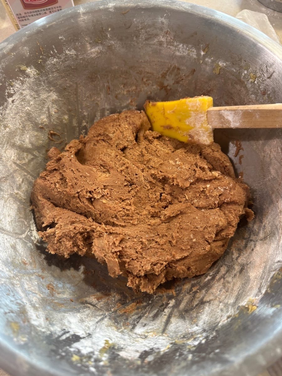 - Luego, tamiza el recipiente con los ingredientes secos en la masa de mantequilla.