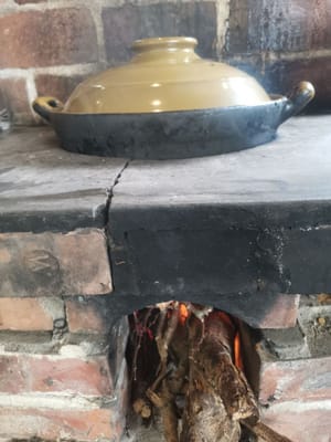 yaca con especias de curry y carbón, al estilo del pueblo.