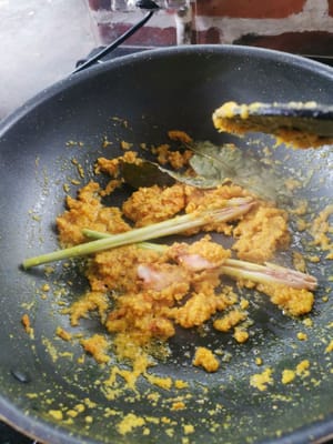 - puis ajouter le galanga, les feuilles de laurier et la citronnelle