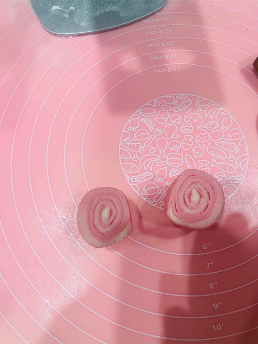 - Regardez ces pâtisseries spirales cuites au four, elles sont absolument magnifiques ! Leurs couches sont croustillantes et distinctes, et s’ouvrent comme un arc-en-ciel. Elles s’émiettent en une seule bouchée, un vrai régal pour les yeux et les papilles !