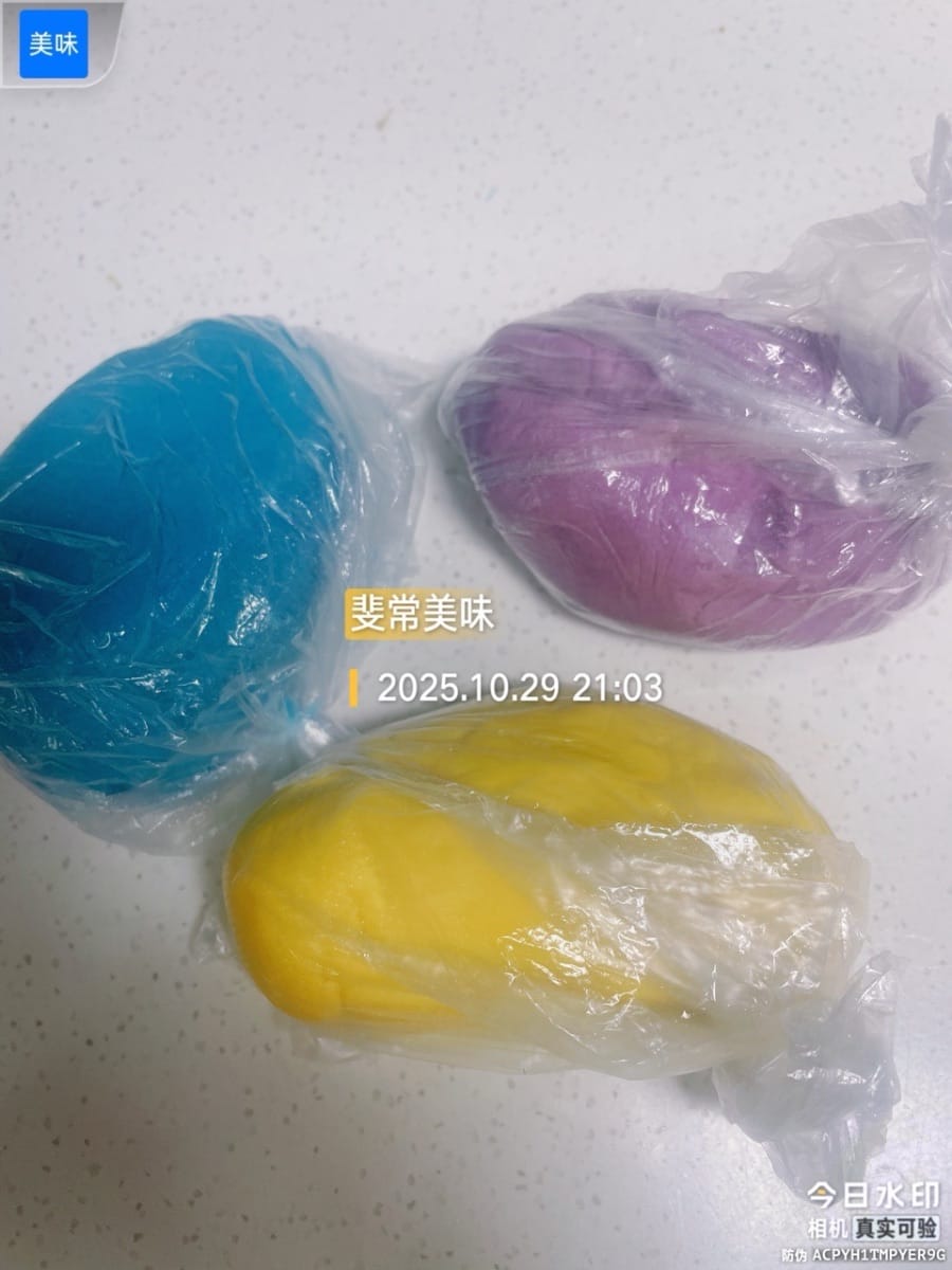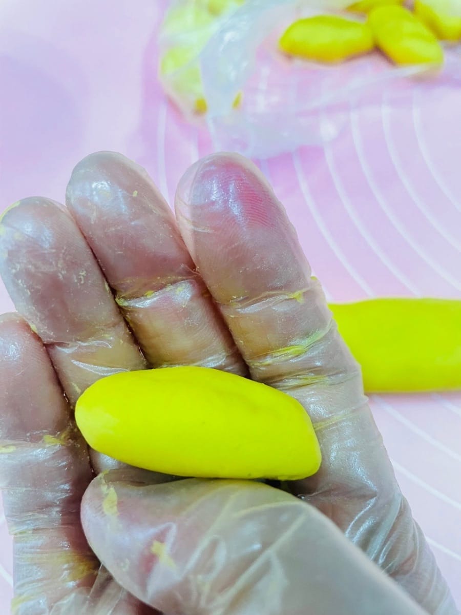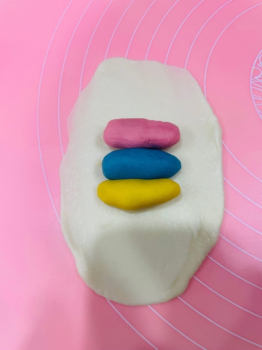 - 1. Pour des pâtisseries tricolores : Divisez la pâte en portions de 9 g et façonnez-les en petites boules.