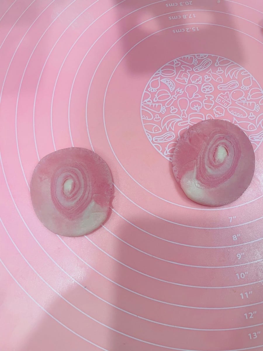 - Les étapes de préparation pour le sablé rose unicolore et le sablé tricolore sont les mêmes qu'à l'étape 15.