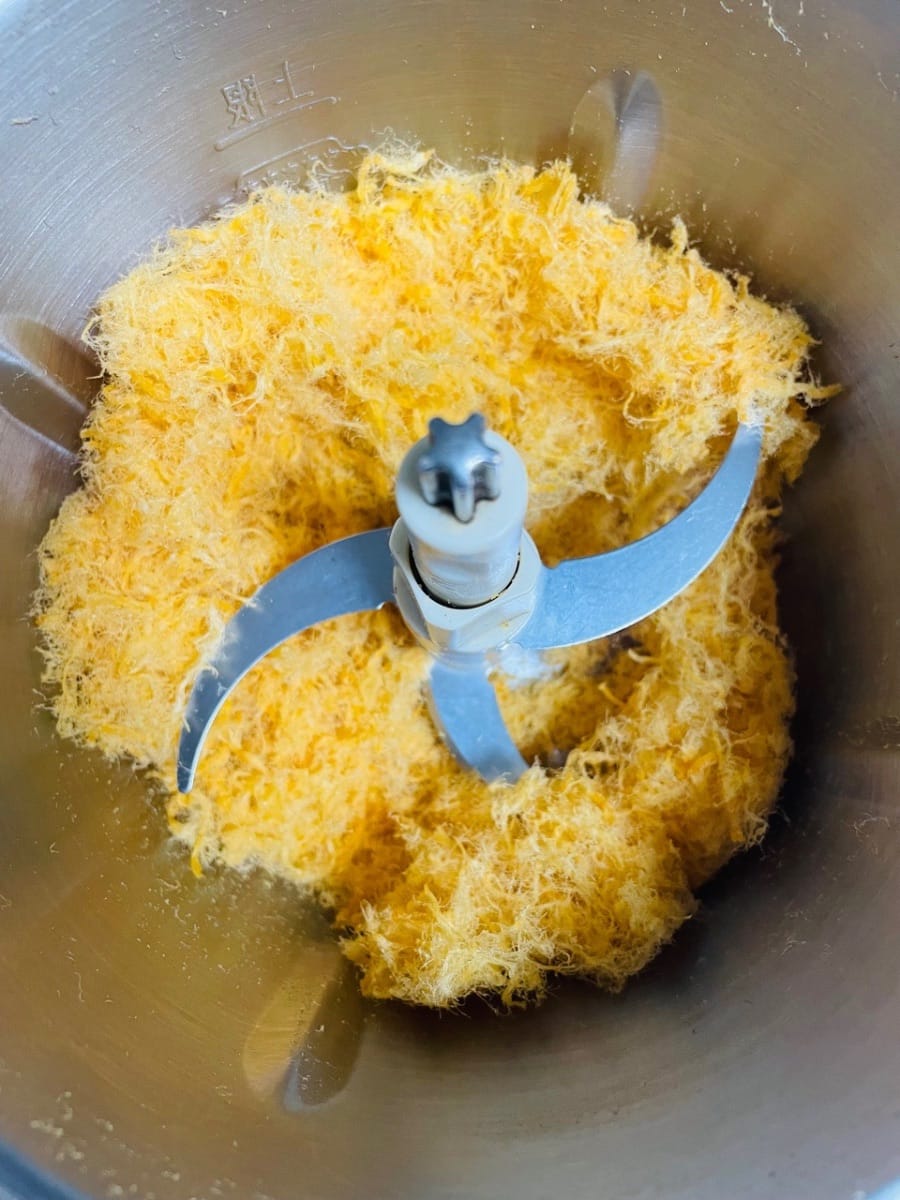 - Mélange de jaunes d’œufs et de porc effiloché. Ajoutez les jaunes d’œufs salés cuits au four au porc effiloché battu et mélangez bien. Cette étape permet d’incorporer parfaitement les jaunes d’œufs et le porc effiloché, afin que vous puissiez apprécier leur arôme à chaque bouchée.