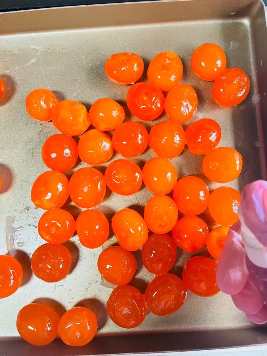 - Environ 20 jaunes d'œufs salés (J'ai utilisé des jaunes d'œufs salés, ce qui donne un goût plus prononcé.)