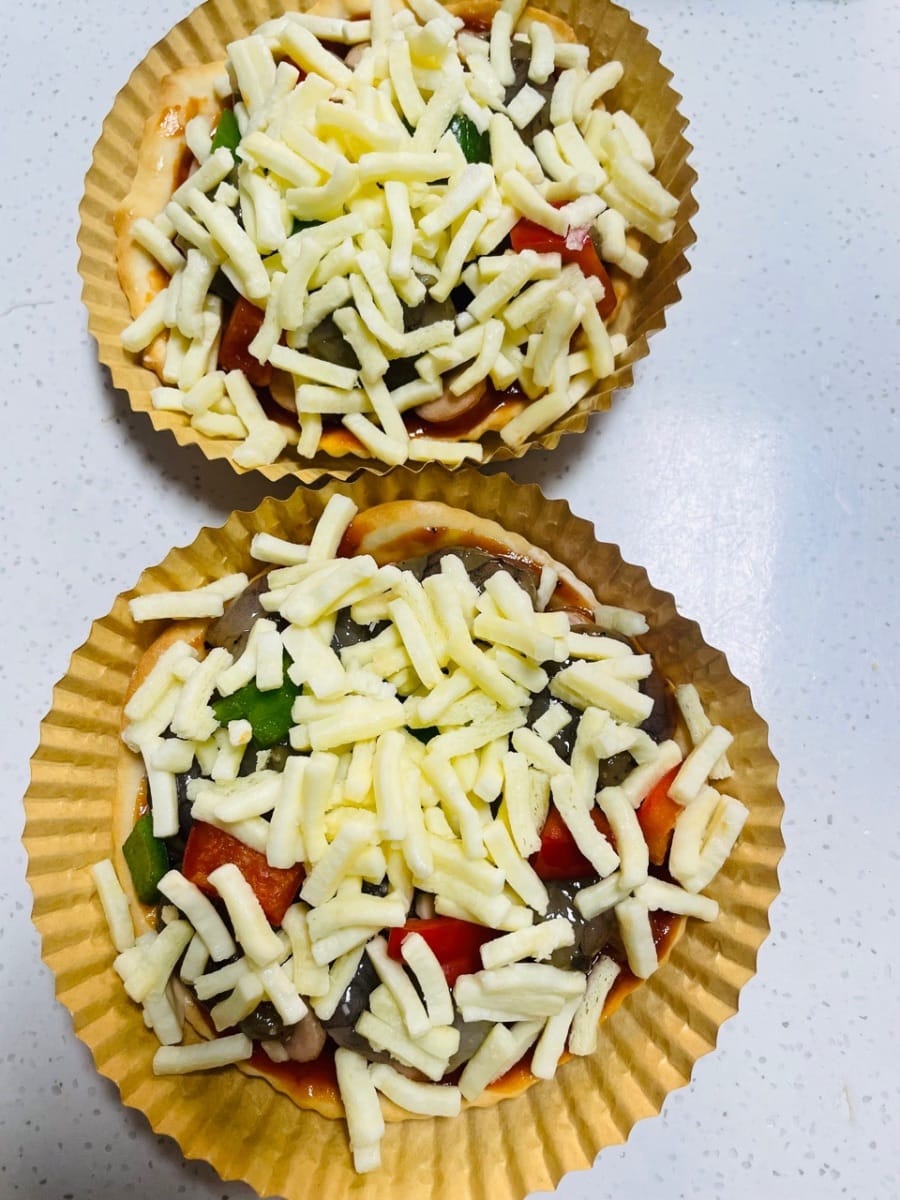 - Pizza Lezat Panggang Oven: Letakkan kedua pizza di rak tengah oven dan panggang pada suhu 180°C selama kurang lebih 12 menit, atau hingga keju meleleh dan kenyal. Selesai!