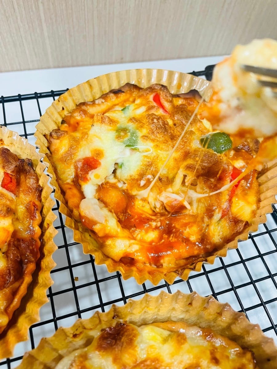 - Pizza Sosis dan Udang Cara Merakit: Oleskan saus pizza tebal-tebal pada alas pizza mini, beri topping sosis, udang, dan paprika hijau dan merah, lalu tutupi dengan tumpukan keju mozzarella yang tebal. Toppingnya sangat melimpah hingga hampir tumpah!