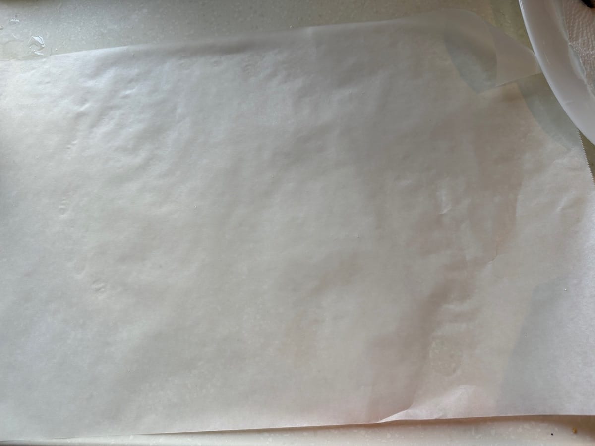 Setelah selesai, Anda dapat memotong kertas perkamen dari tengah untuk menyajikan.