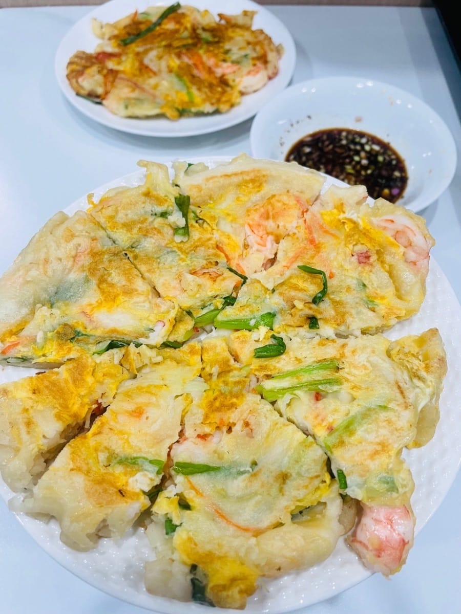 Panekuk bawang hijau seafood (해물파전/Haemul Pajeon) adalah hidangan panekuk Korea yang klasik. Tidak hanya menjadi camilan sehari-hari bagi orang Korea, tetapi juga sering dinikmati dengan makgeolli (anggur beras), dan merupakan favorit klasik di hari hujan.