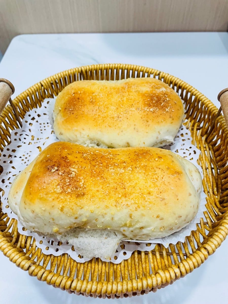 - Panaskan oven hingga 180°C, masukkan adonan roti ke dalam oven. Bubuk keju kering mudah gosong, jadi pastikan untuk menutupnya dengan kertas aluminium/loyang. Panggang hingga permukaannya berwarna cokelat keemasan dan bagian dalamnya matang (sesuaikan waktu sesuai dengan ukuran adonan, umumnya 20-25 menit).