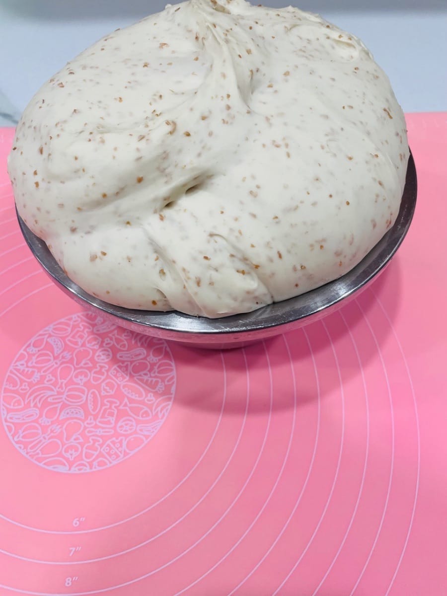 - Masukkan semua bahan adonan ke dalam mangkuk pengaduk dan uleni hingga mencapai konsistensi membran 90% (dapat diregangkan menjadi membran tebal, dan tepi sobekannya sedikit kasar).