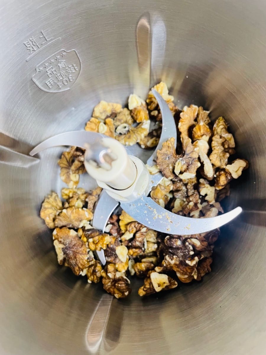 - Schiacciate o schiacciate le noci e mettetele da parte. Non schiacciatele troppo finemente; qualche pezzettino le renderà più saporite.