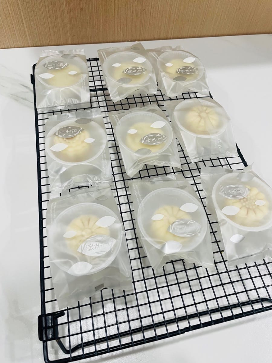 Sbrigati a rimettere questo mooncake innevato nel congelatore! È destinato alla "cella frigorifera", dove mantiene la sua consistenza fresca, morbida e glutinosa, rendendolo così rinfrescante al primo morso. Se lasciato a temperatura ambiente per troppo tempo, diventerà morbido e appiccicoso, perdendo completamente il suo sapore! Esatto, ricordati di tenerlo nella "cella frigorifera" per almeno sei ore prima di gustarlo. E consumalo velocemente prima della data di scadenza, così non farai andare a male questa deliziosa delizia!