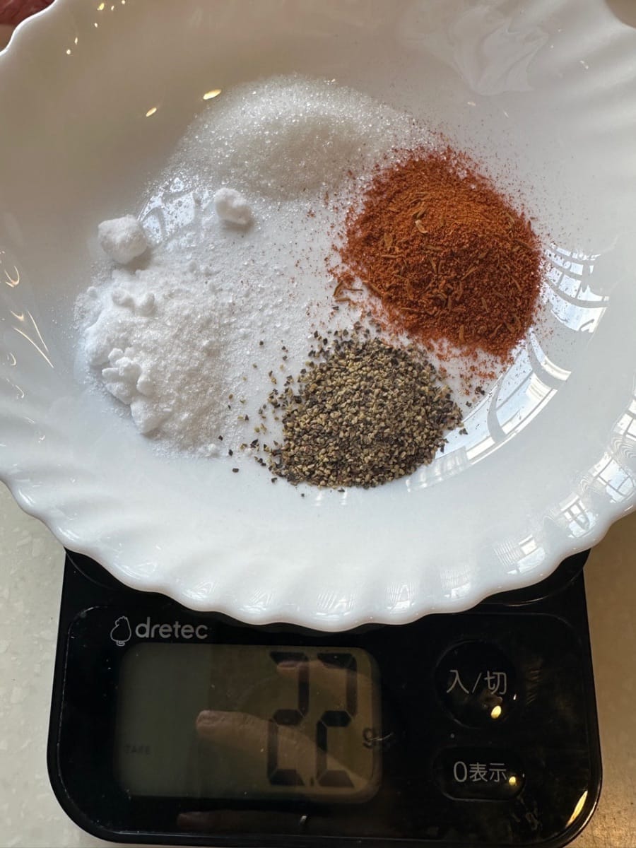condimento Cajun 0,7% del peso del maiale (qui vengono utilizzati 3 g)