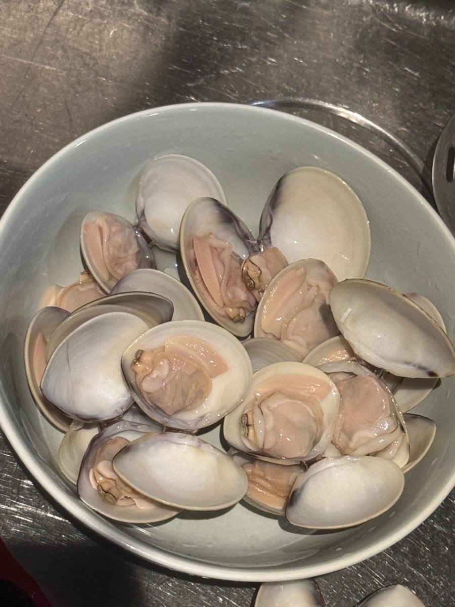 Sbollentare le vongole in acqua bollente per tre minuti (per eliminare la sabbia) e metterle da parte.