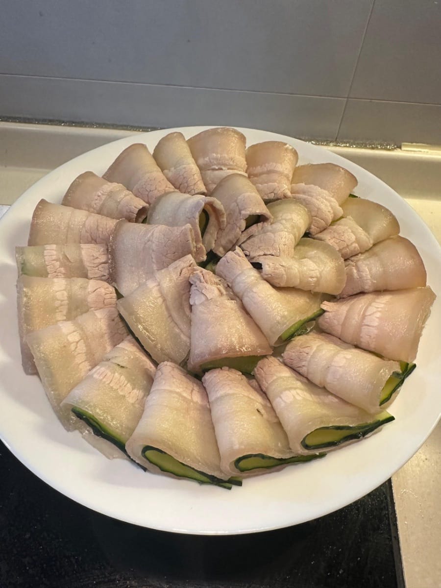 prendi una fetta di carne, mettici sopra un cetriolo e piega