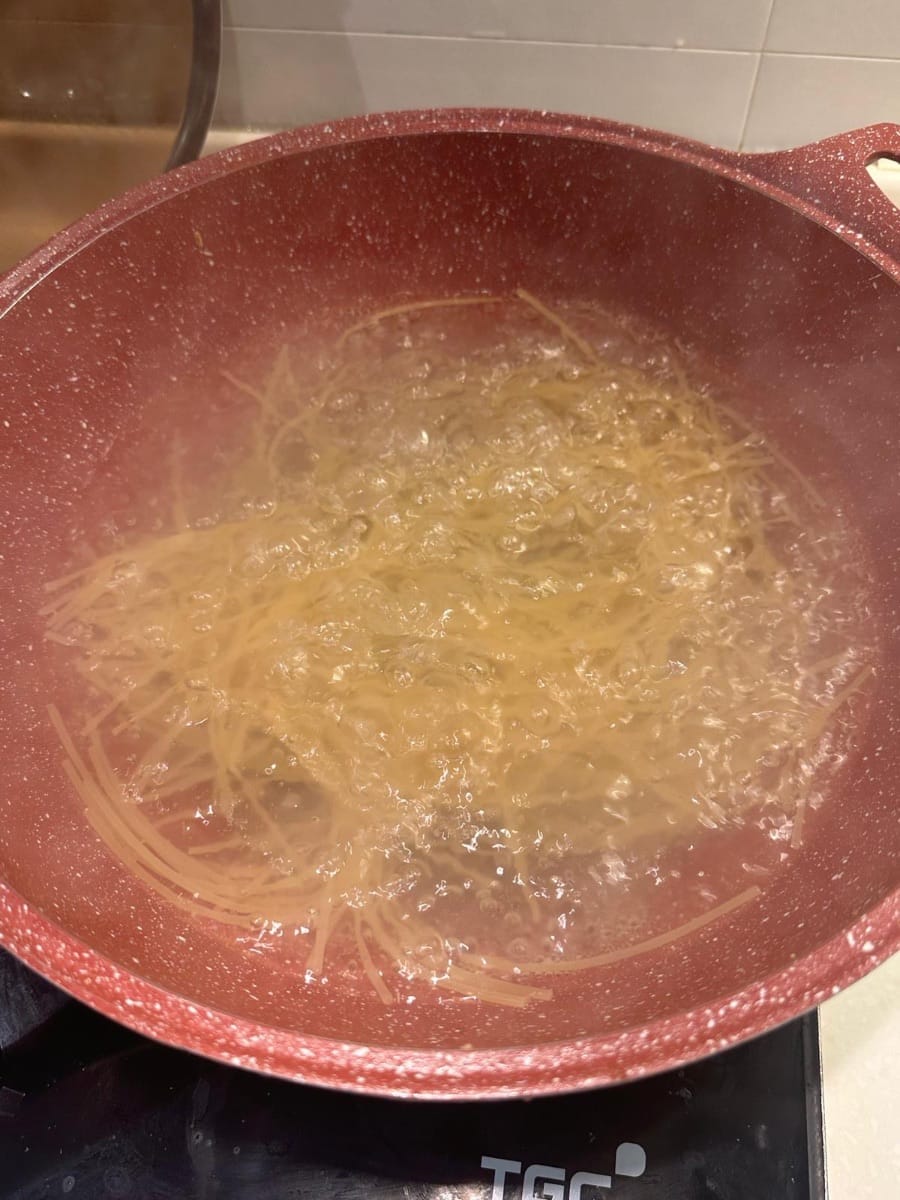 - Preparare una pentola d'acqua e cuocere la pasta per bene secondo i tempi di cottura indicati sulla confezione