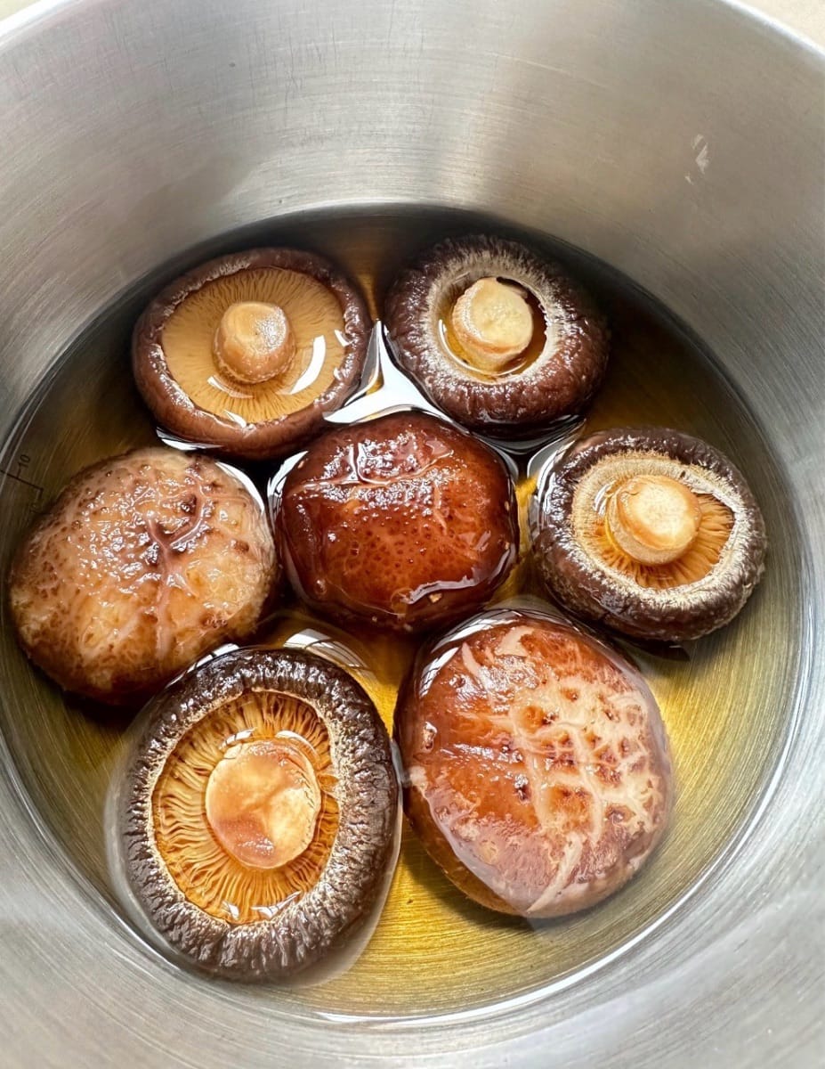 - Iniziare mettendo in ammollo i funghi shiitake finché non saranno completamente ammorbiditi