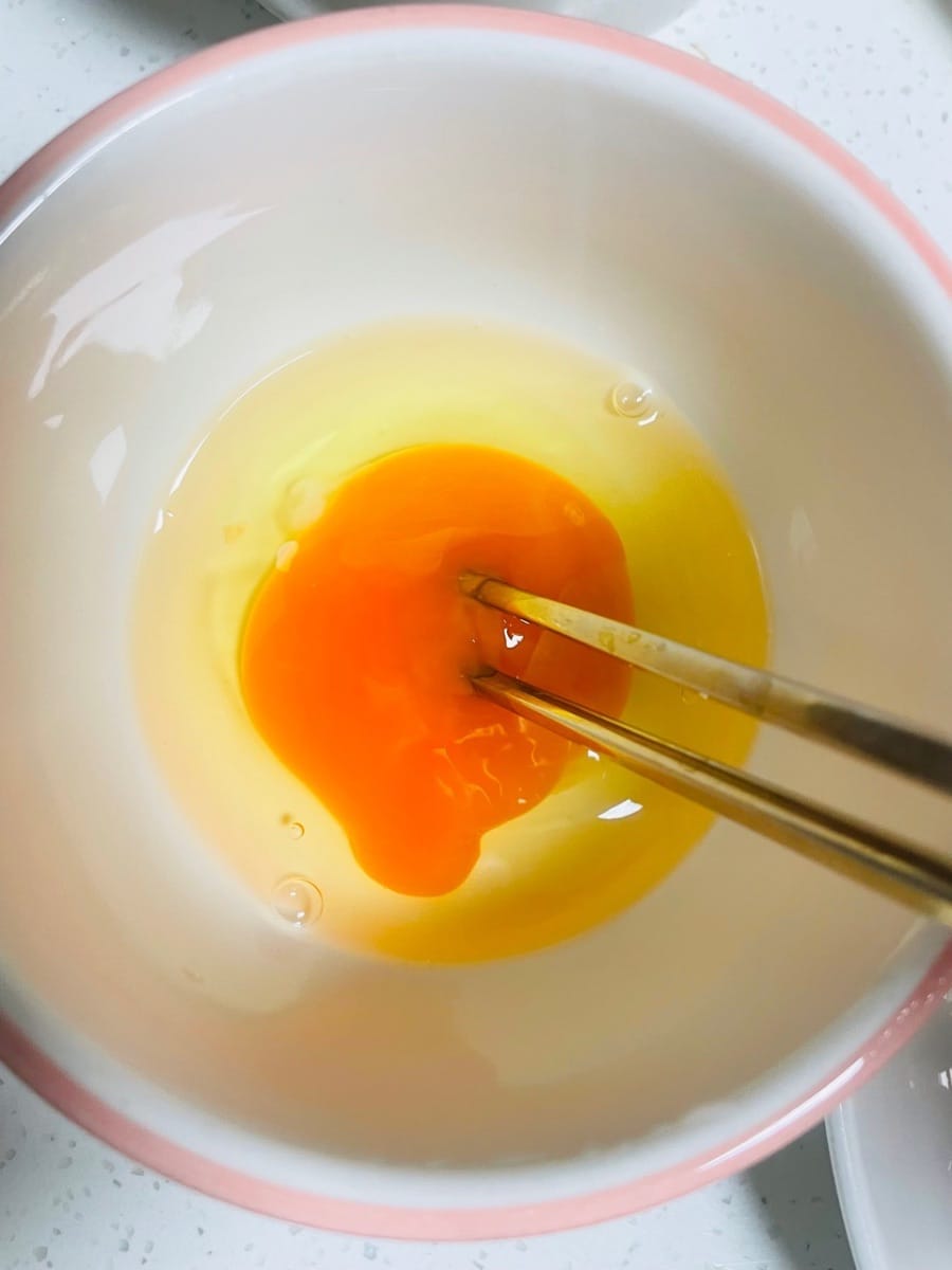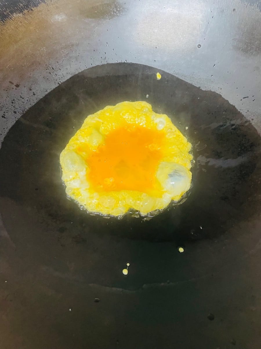 - Versare l'olio in una padella, soffriggere il composto di uova fino a quando non diventa dorato e spumoso, quindi mettere da parte.