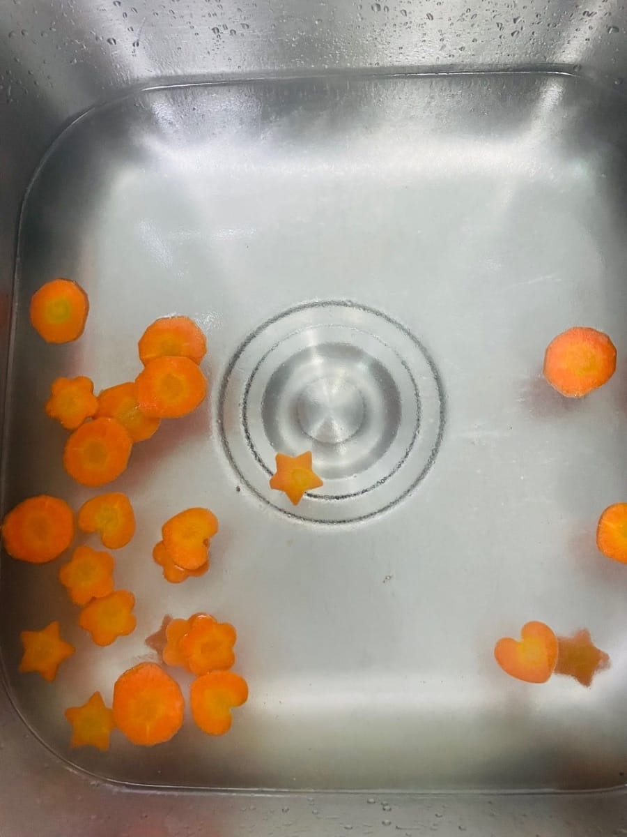 - Tagliate le carote e l'igname a fettine sottili della forma che preferite.