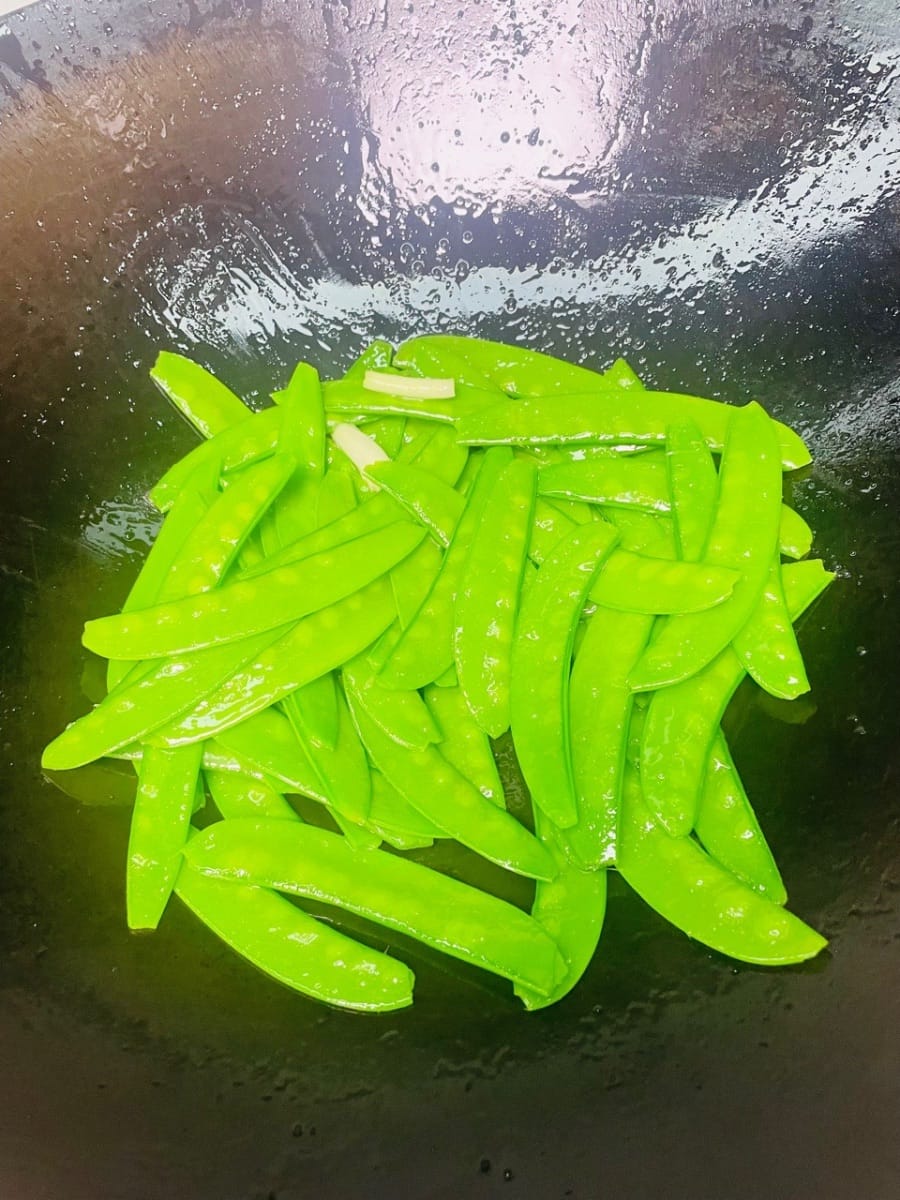 - aggiungere i piselli mangiatutto e soffriggere per 1 minuto