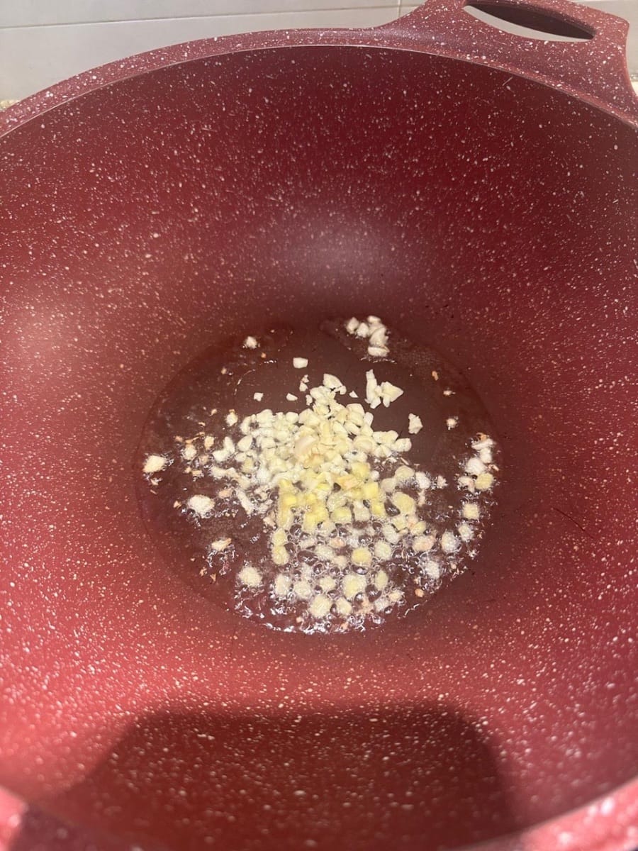 - in un'altra padella, aggiungere l'aglio e lo zenzero, soffriggere fino a quando non saranno aromatici