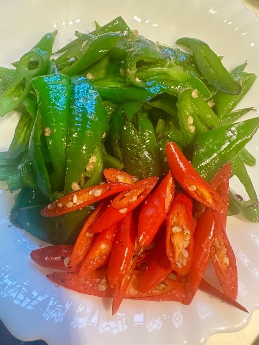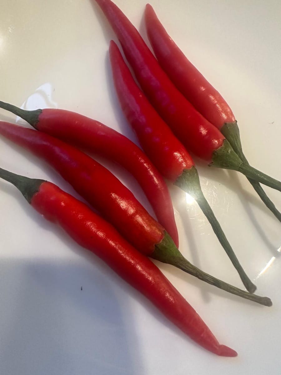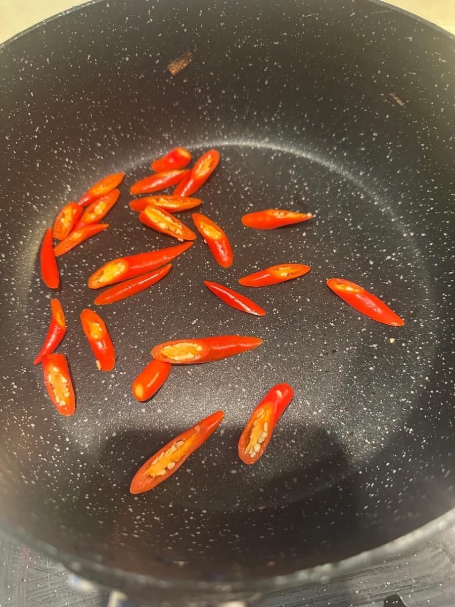 - 3 piccoli peperoncini rossi (regolare in base al proprio livello di spezie)