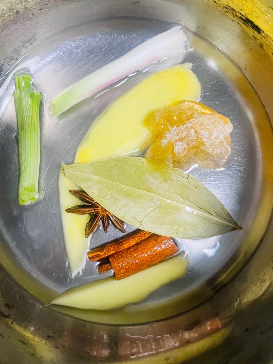 - Preparare le spezie: lavare il cardamomo, l'anice stellato, le foglie di alloro e la cannella e asciugarli tamponandoli con carta da cucina.
