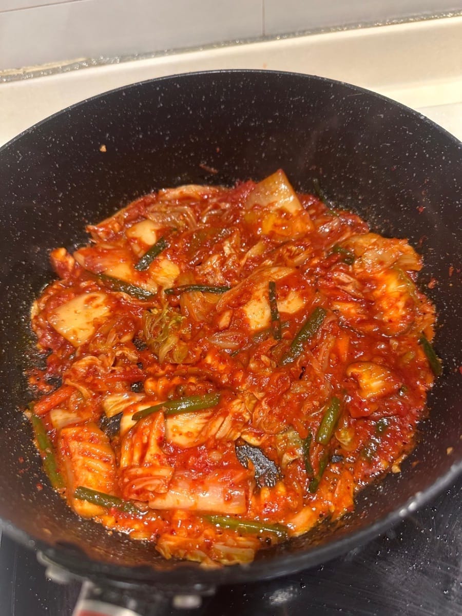 Torta di riso con pollo fritto Kimchi - Italiana (Italian) version
