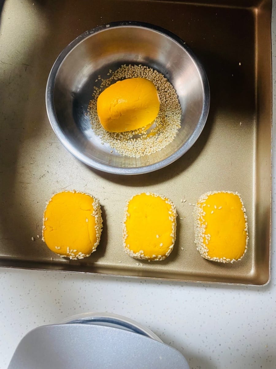 黄金色の生地に白ゴマをまぶし、割った瞬間にチーズがほろほろと弾け、ミルクとサツマイモの豊かな香りが広がります。歯ごたえのある食感とゴマの心地よい歯ごたえが絶妙で、まさに絶品です! 食の美しさは、まず視覚を満足させ、次に舌で味わうことから始まります。食欲をそそる料理だけが、提供され、写真に撮られるに値するのです!😄