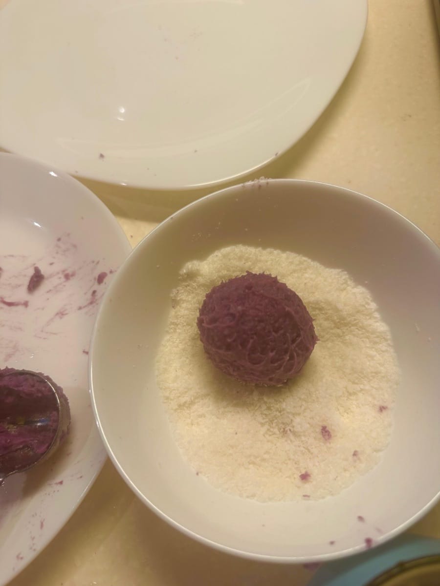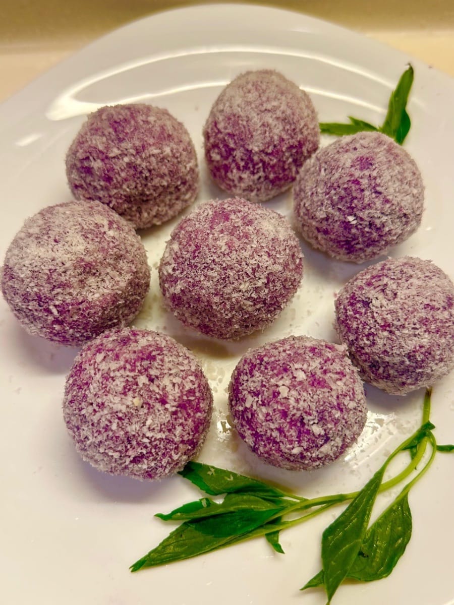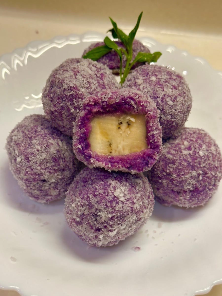 この紫芋、バナナ、ココナッツボールは、一口食べたら虜になる、ヘルシーで美味しいデザートです!✨ 紫芋:「紫人参」としても知られる紫芋は、通常のヤムイモの60倍ものアントシアニンを含んでいます。また、ムコプロテインと多糖類も豊富で、紫芋よりも栄養価が高いと言われています。 紫芋と甘いバナナを合わせ、濃厚なココナッツフレークでコーティングした、見た目も美しく、美味しい紫芋、バナナ、ココナッツボール。難しいテクニックは必要ありません。ご家庭でも簡単に再現できます。 外側のココナッツフレークはココナッツの風味を引き立てるだけでなく、見た目も華やかに。とろけるような食感が、濃厚で重層的な味わいを醸し出します。 バナナの甘さとココナッツのカリカリ感が口の中で絡み合い、中華風ペストリーの温かさと東南アジアのトロピカルな雰囲気が融合した一品です。アフタヌーンティーのおやつとして楽しむにしても、お祝いの席でのエレガントな盛り付けとして楽しむにしても、きっと感動していただけることでしょう。