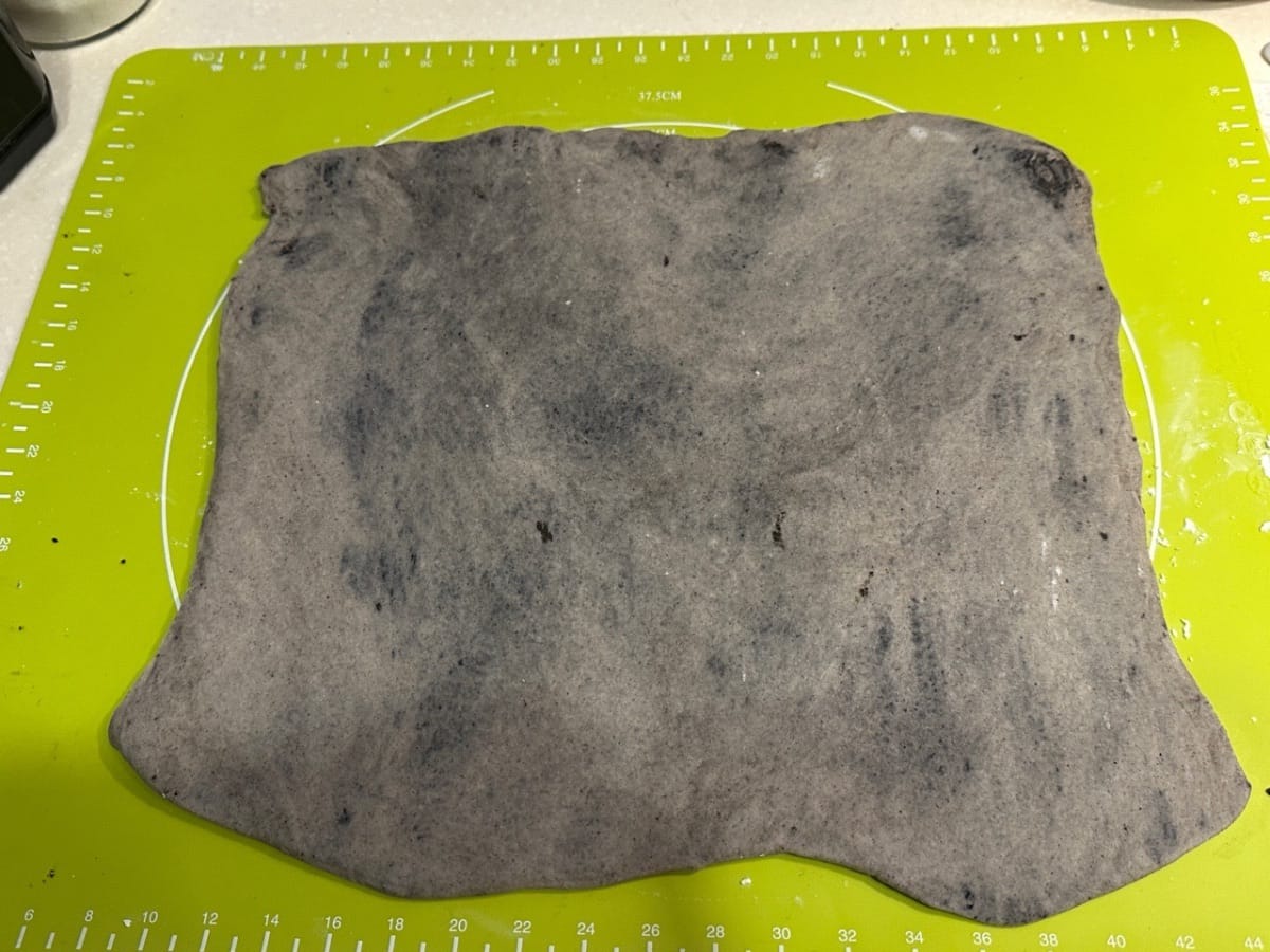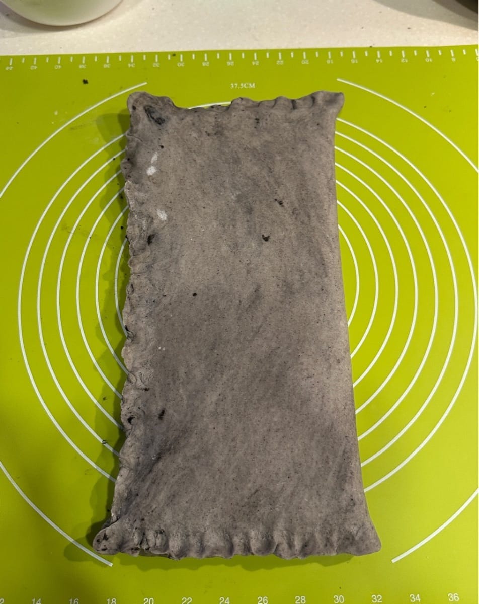 이번에는 반죽을 뒤집어서 예쁜 면이 위로 오도록 하세요.