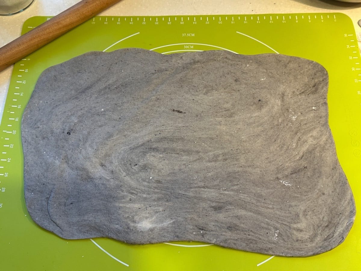 반죽을 다시 한번 조심스럽게 직사각형 모양으로 밀어 펴고 위의 단계를 반복합니다.