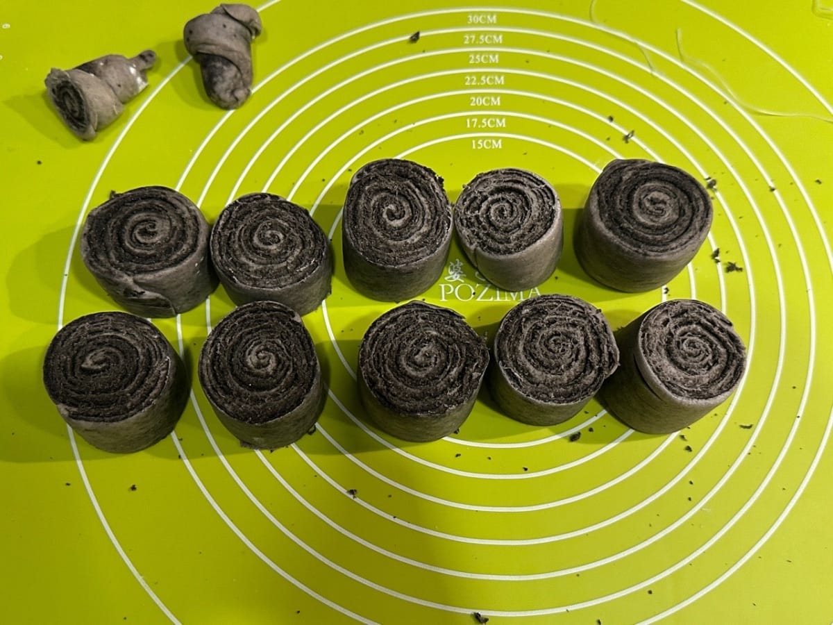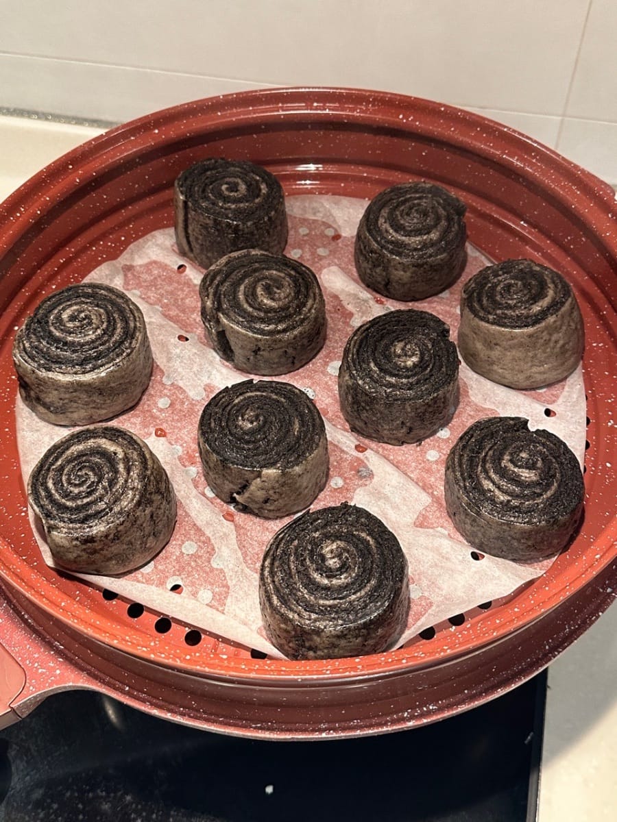 Gedämpfte Brötchen mit tausend Schichten schwarzem Sesam - Deutsch (German) version
