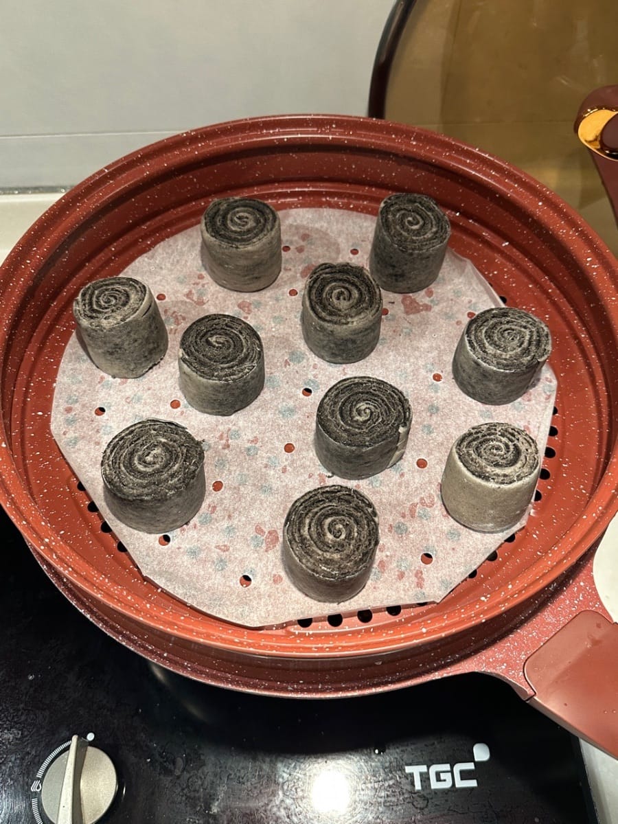 Bollos al vapor de mil capas de sésamo negro - Española (Spanish) version