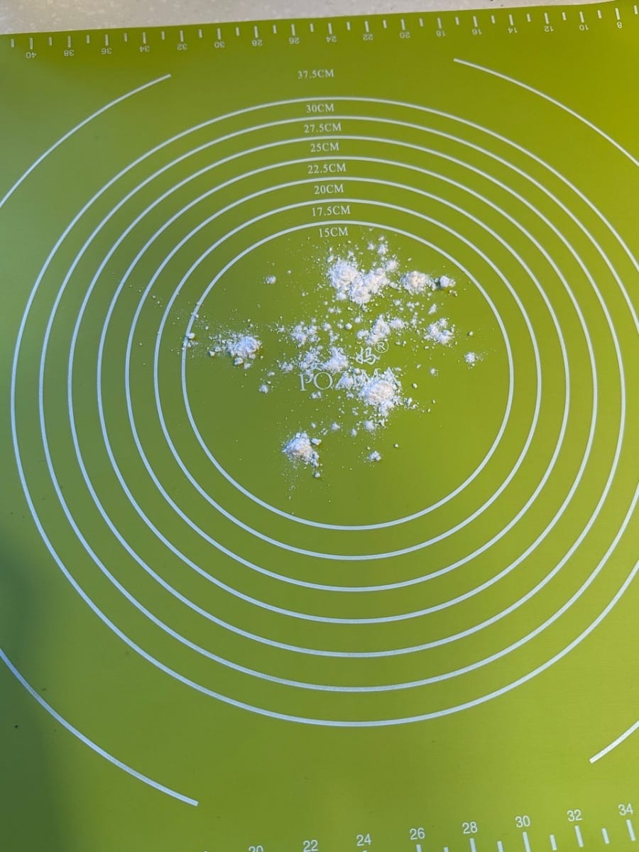 반죽을 밀가루를 살짝 뿌린 밀대 위로 옮기세요.