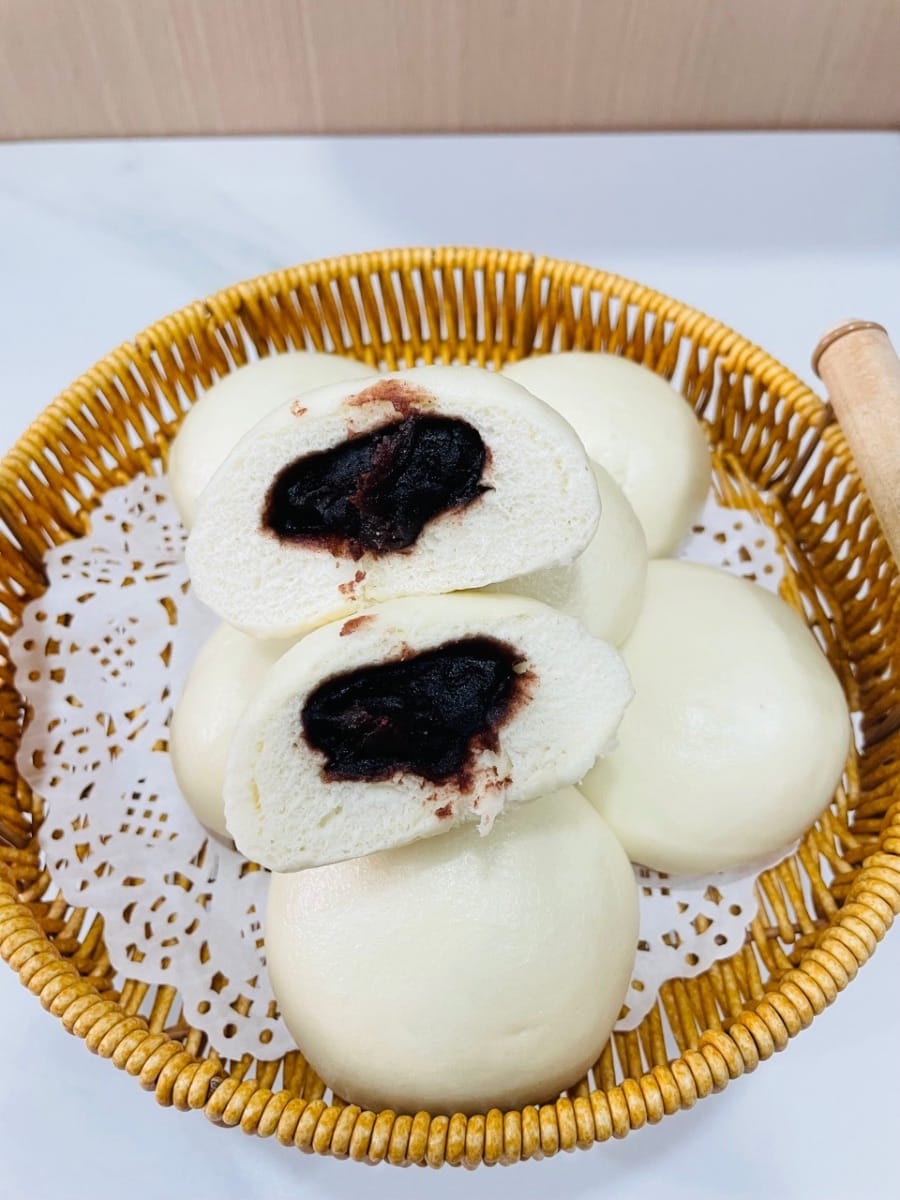 ซาลาเปาไส้ถั่วแดงมะพร้าวสไตล์กวางตุ้ง ผิวมันเงา - แบบไทย (Thai) version