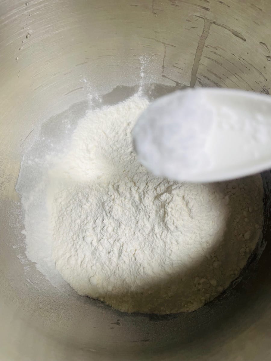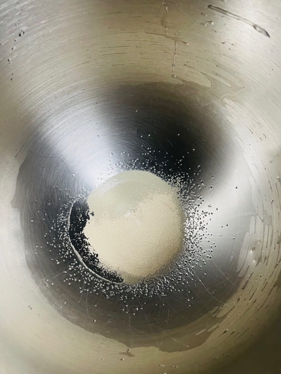 - 믹싱 볼에 드라이 이스트, 다목적 밀가루, 소금을 넣고 식힌 코코넛 워터를 부어 반죽이 매끄러워질 때까지 반죽합니다.